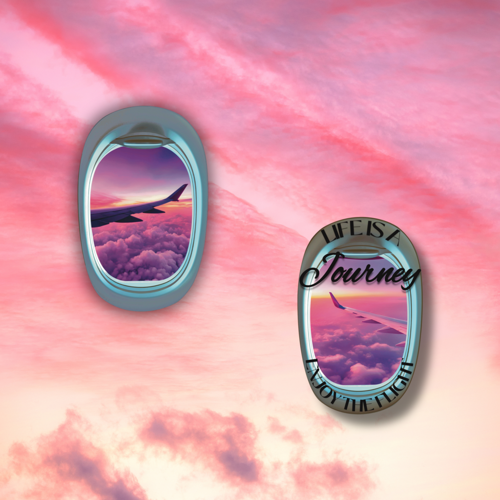 Airplane Window View Vinyl Sticker - 2 Sizes, Matte, Glossy, or Holographic